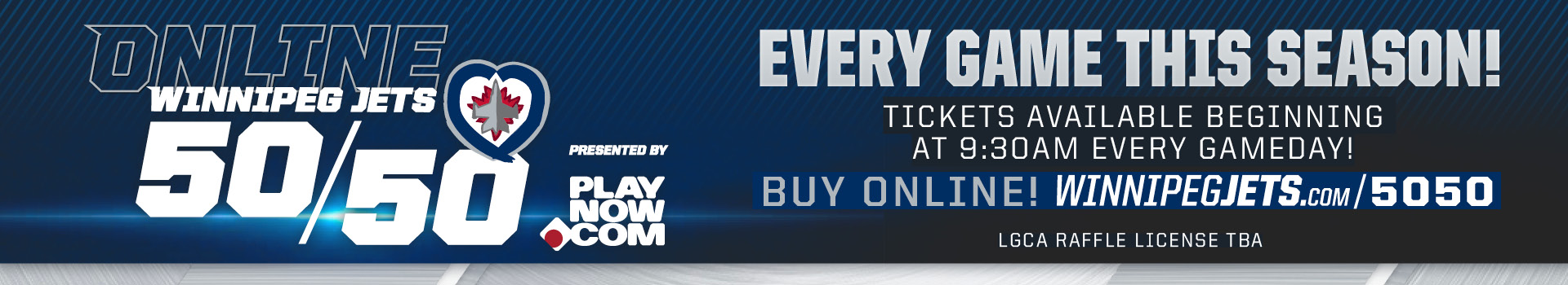 Winnipeg Jets 50/50 presented by PlayNow.com will open at 9:30 a.m. CT each gameday, and close at the end of the third period of that day’s game. Jets fans can purchase their online 50/50 tickets at WinnipegJets.com/5050. The results of each game’s 50/50 draw will also be posted at WinnipegJets.com/5050 with the winning ticket being drawn approximately 30 minutes after the completion of the raffle and the winning number posted no later than an hour following the draw.