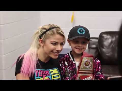 Drea hands Bliss a WWE Championship belt for her to sign and timidly thanks her. While Bliss talks with Drea’s family, Drea quietly stares in awe.
